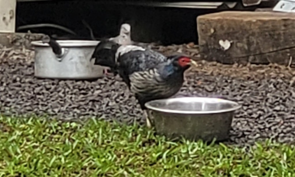 My condo in Hilo overlooked a bunch of state government buildings, and each had chickens living on the lawn under some trees. I went to bed listening to the soft, musical chirping of Coqui Frogs at night and woke each morning to chickens.
