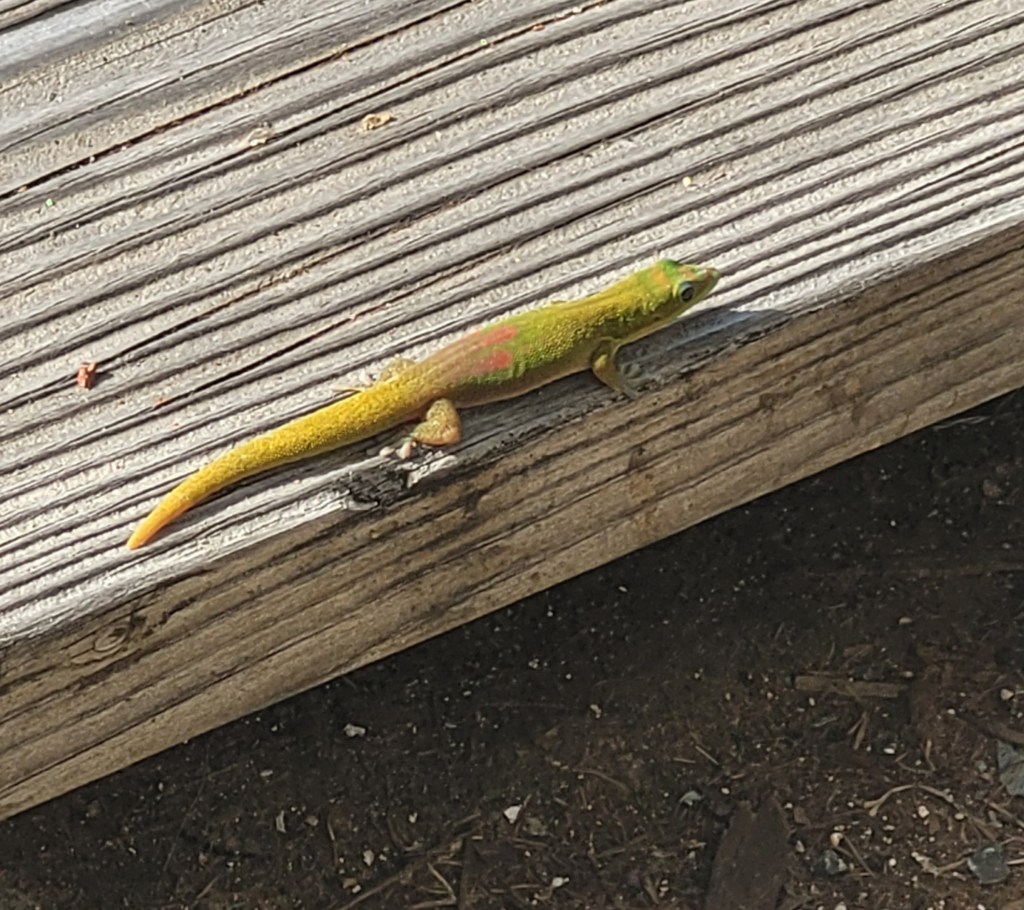 This seems to be the most common photograph of a gecko. They are small sprinty lizards, very nimble on those sticky green feet. You see one! You shout “Geck — !”
