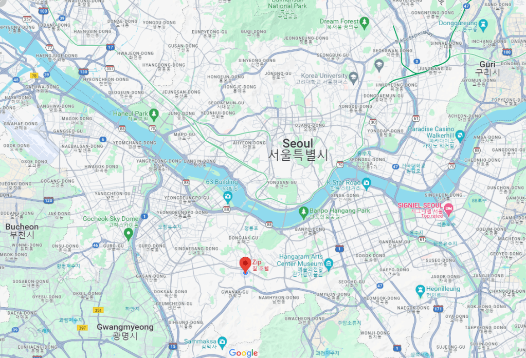 Seoul is a huge city of close to 10 million people. There is an excellent system of buses and subways, but it can easily take an hour to travel somewhere on this map.