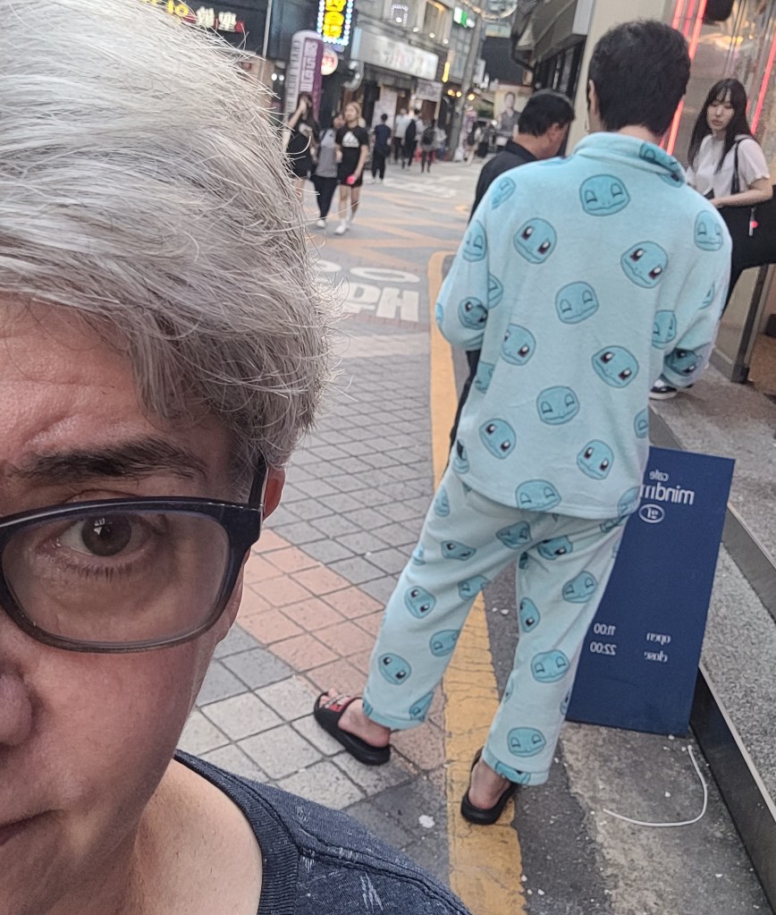 Of course, not everyone falls in line with all of this. So who are the real fashion rebels of Seoul? OLDER PEOPLE! Older people, who wear whatever the hell they want. They wear red, rust, bright blue with popsicle faces, and electric orange! They wear whatever they damn well please.