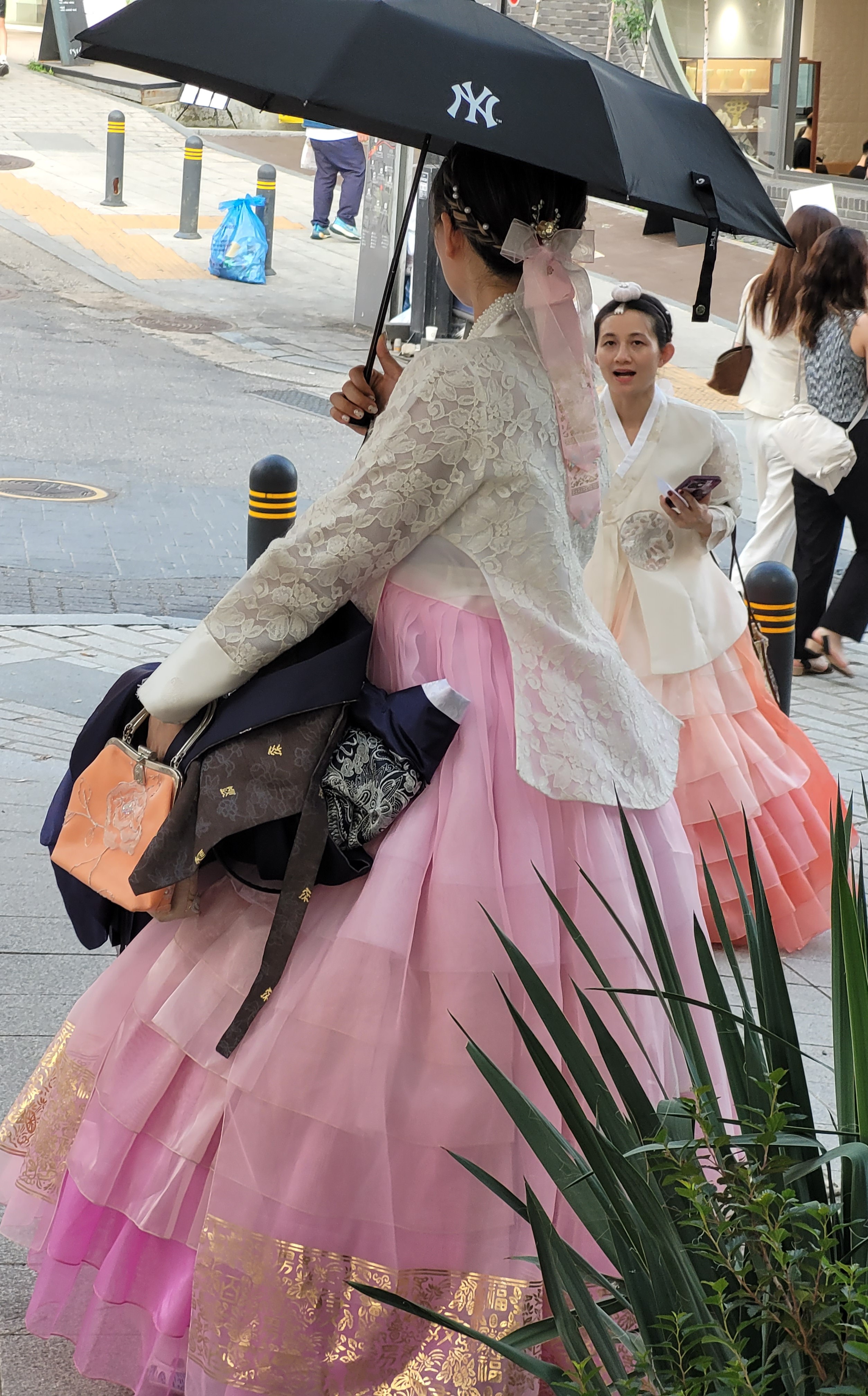 I think you will concur that elegant Hanbok and a NY Yankees umbrella is a most wonderful combination.