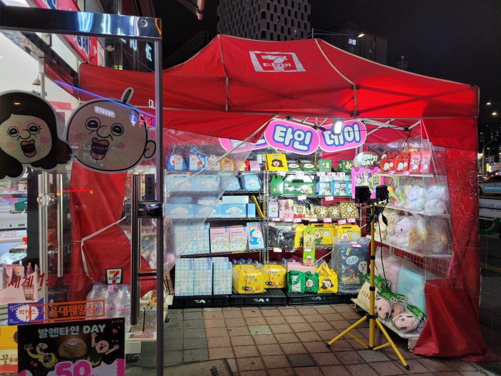 Pop-up gift shops appeared, with flowers, gift boxes of cookies and sweets, and lots of stuffed animals for shoppers needing presents to give to extended family.