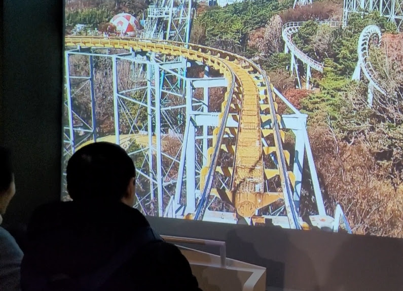 The museum exhibit included a rollercoaster ride, in the form of a stationary coaster car in front of a screen with a looping video.