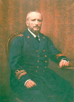 This is a public domain portrait of Admiral Magnaghi in his naval officer uniform. In the course of his career, he invented quite a few useful things for ocean exploration, including a water sample bottle that somehow fills and flips and then awaits collection by the scientists.