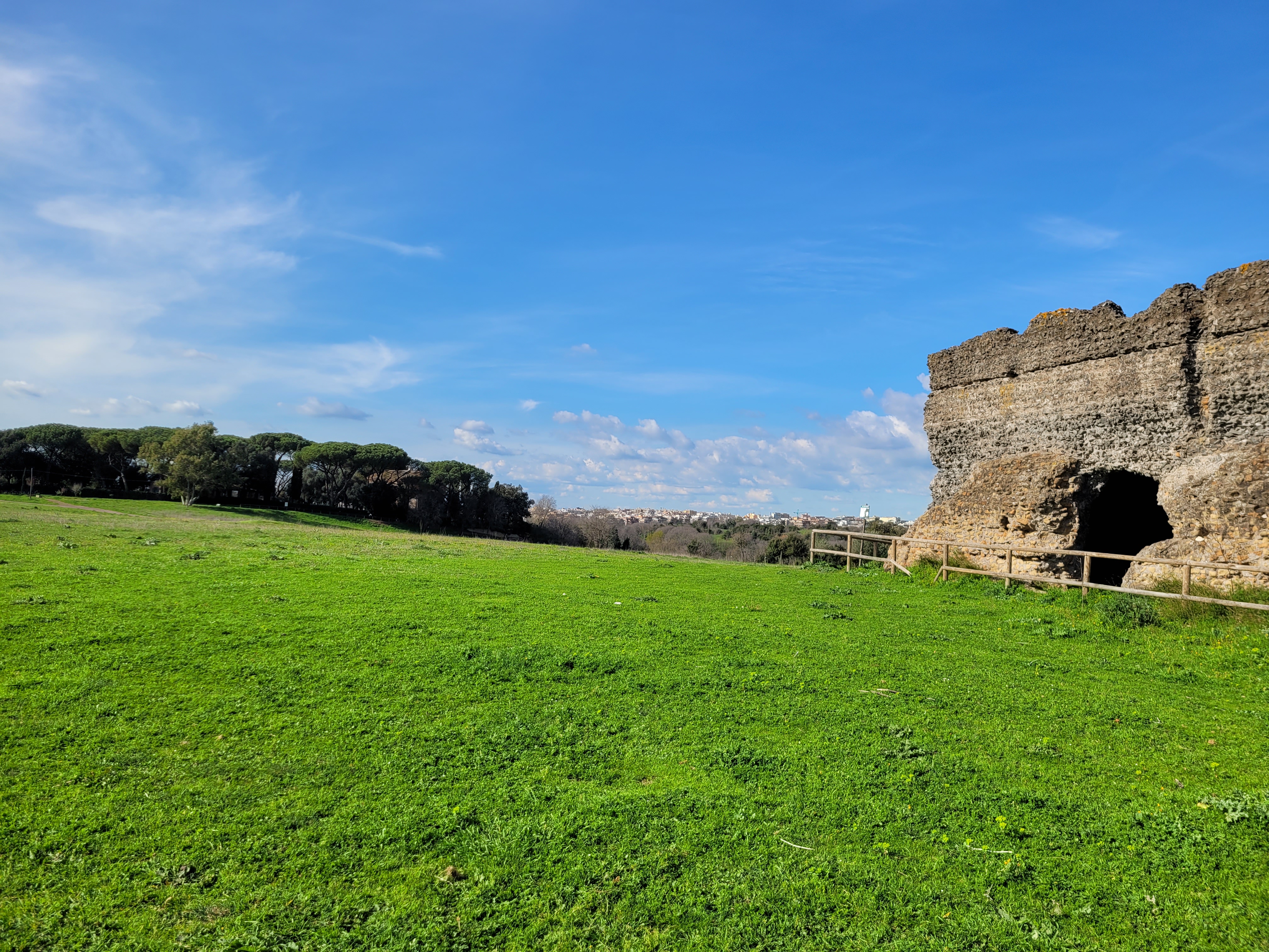 I did spot some rabbits one day! There were three eating grass, all very large, and they seemed pretty unafraid of people. I’d biked over to the northern side of the Casale della Vaccareccia when I saw them. I was trying to discover where the park ended on the eastern side that day.