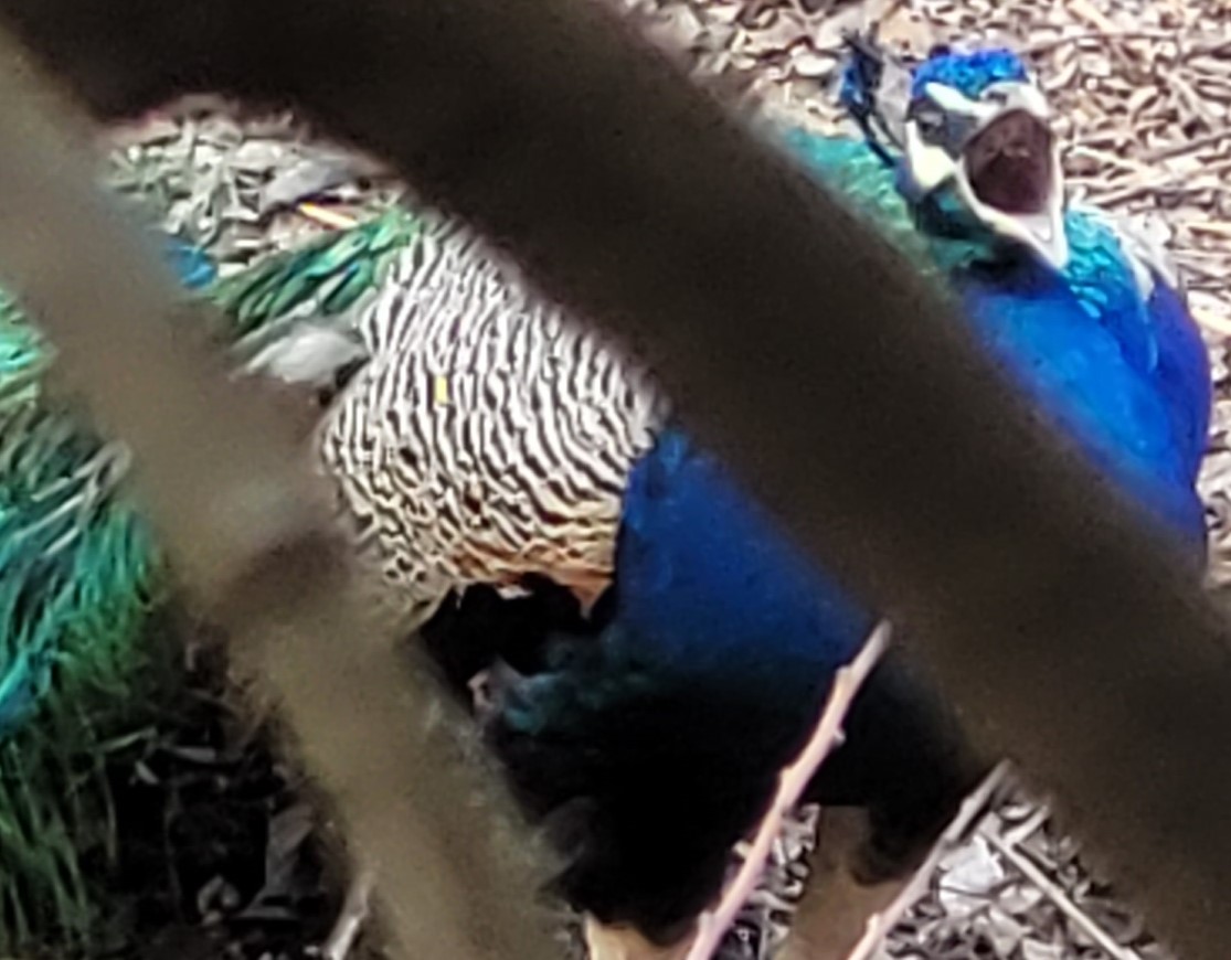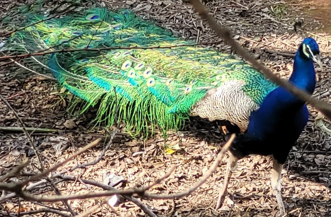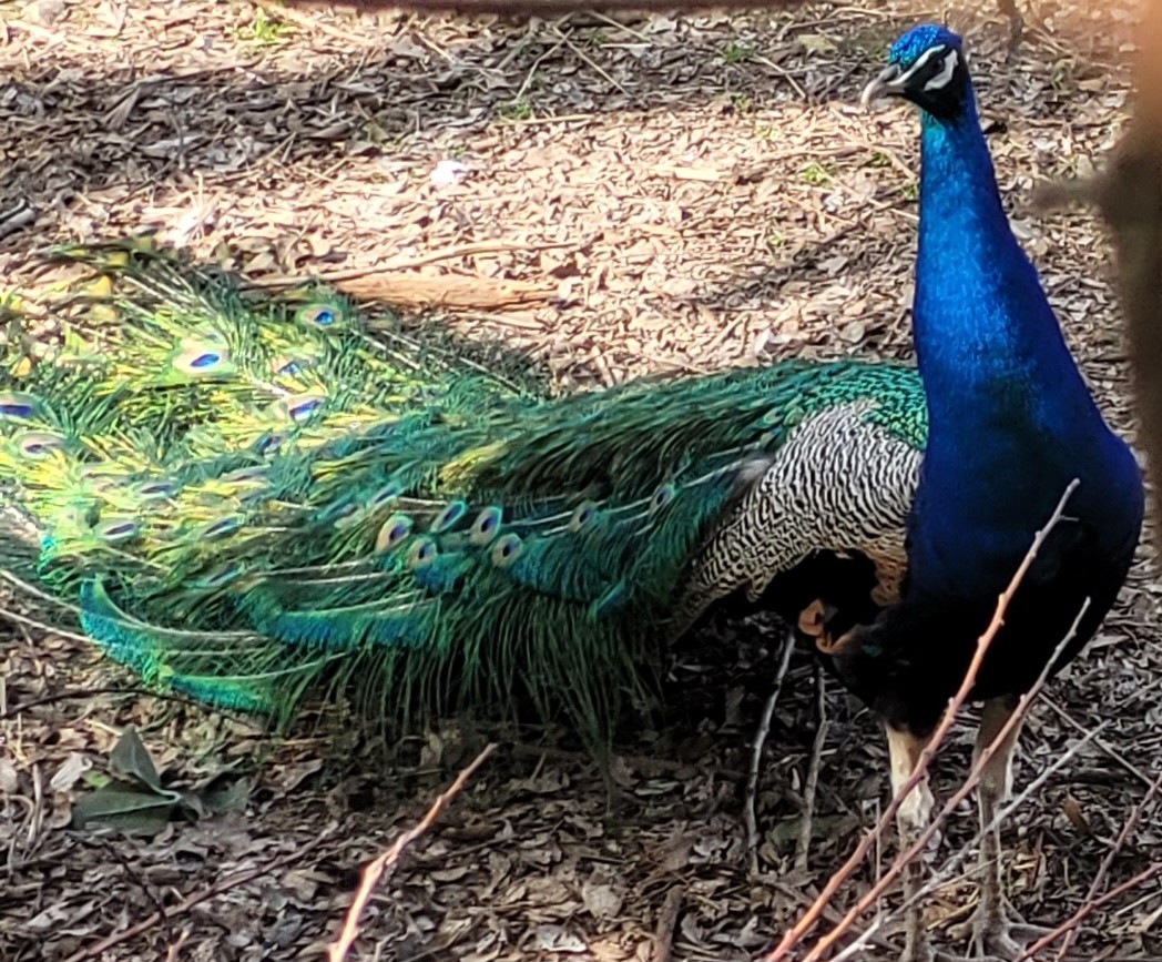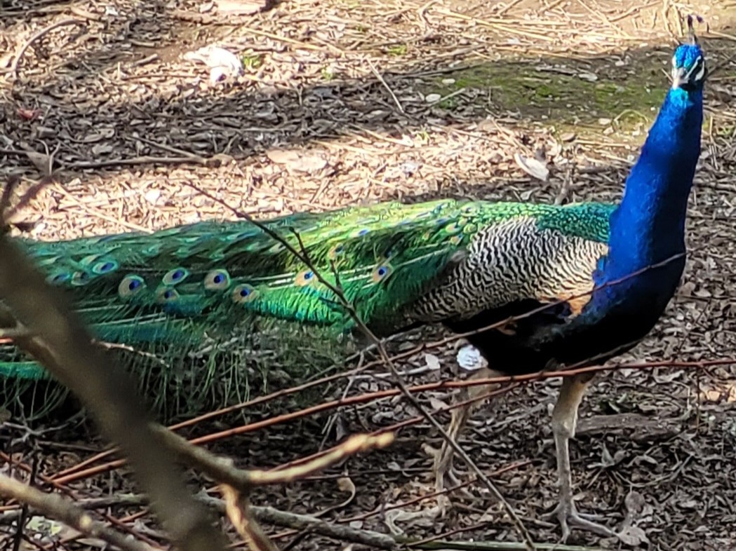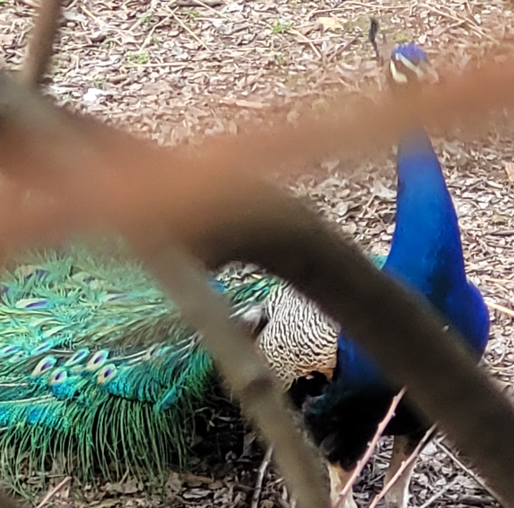 But that peacock, man. It took several visits to get a picture of the elusive peacock. At first I could only hear him, but then began to get glimpses. That peacock is not into being photographed at all.