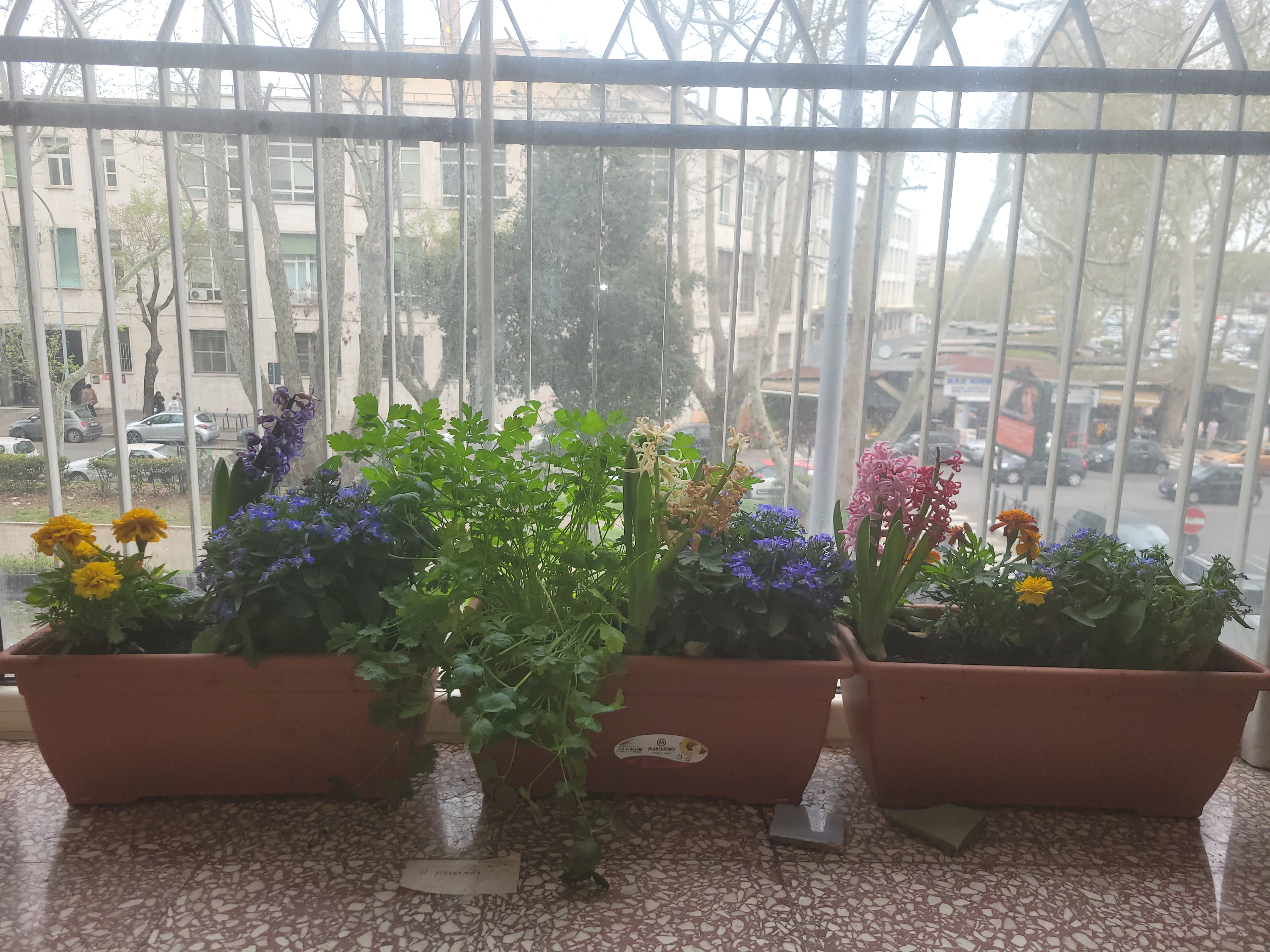 Because it’s not a balcony if there are no plants. And because I am an obsessive gardener. And because I have made a garden practically everywhere I have ever lived. Lobelia, Carnations, Primroses, Marigolds, Parsley, Hyacinth.