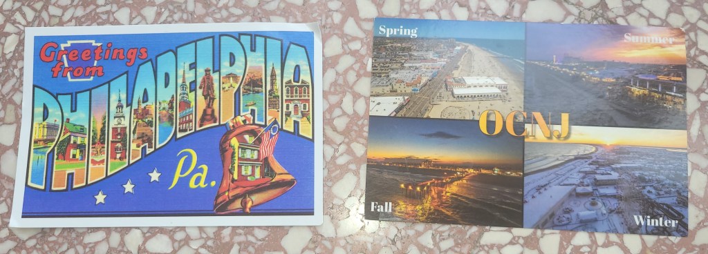 Darla and Hillary, thanks and more thanks! I was so happy to get postcards of PA and NJ! They are now in the “Geography” section of the mail display in my hyacinth-scented living room.