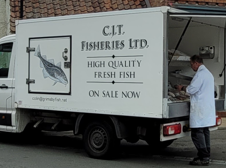 If it’s Thursday, then it’s the Fresh Fish Truck! The Truck goes to Stokesley on Thursday mornings, and then it arrives in Great Ayton in the parking lot outside the hardware store – post office on Thursday afternoons at about 1 or 1:30 pm. I am a regular at the Fresh Fish Truck, having made a special effort to remember that, in Great Ayton, Thursdays = Fish.