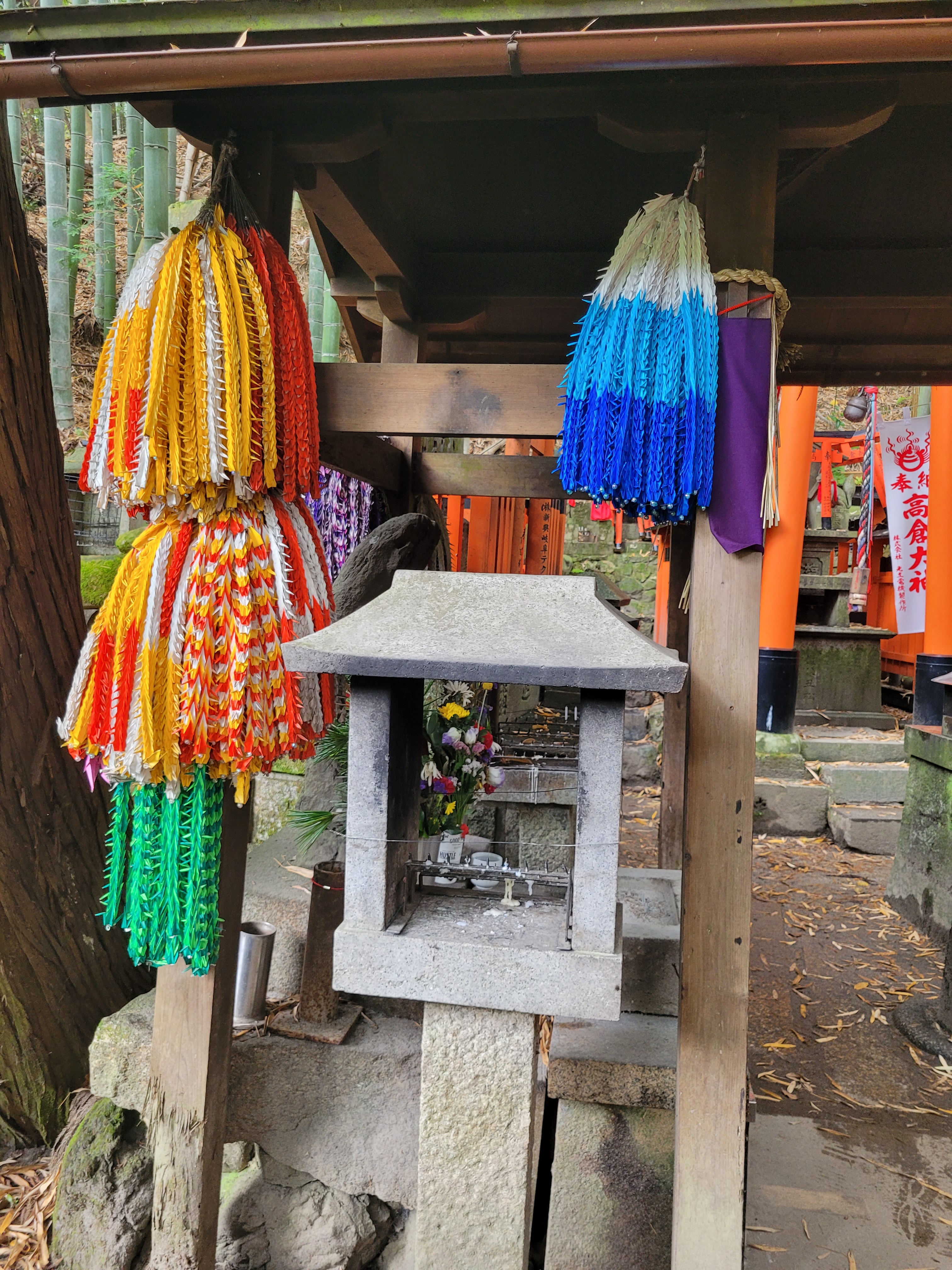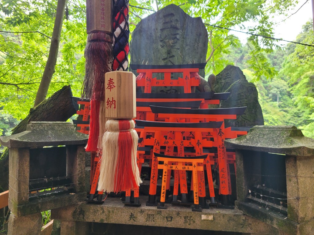There are also hundreds of small altars along the way, made by local people over the years. Some have miniature torii, bells, and statues.