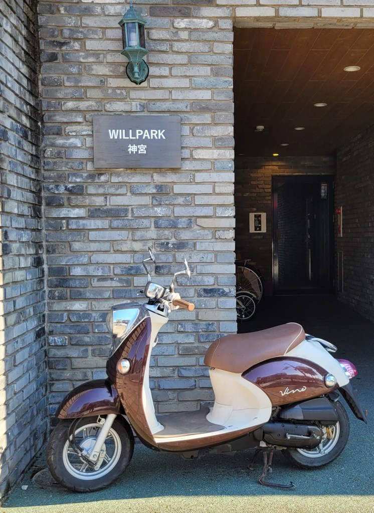 I saw both of these incredible bicycles on the same day, on my way home from visiting a temple garden in central Kyoto. I have never seen anything like them. Each is actually my size, but I bet they are each very distinctive to ride.