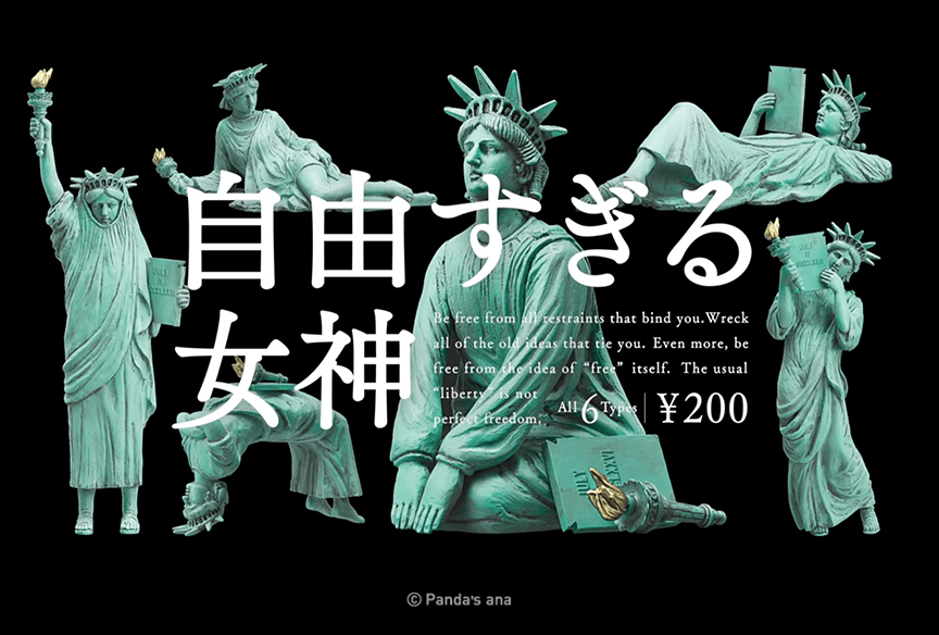 The Japanese on the paper reads: “Too Free A Goddess.” That’s helpful. No, not really. So is Lady Liberty in need of freedom or is she already “too free?” It’s like the title of that famous episode of The Twilight Zone, “To Serve Man.” Is that the alien’s generous aim in visiting Earth? Or is it the name of their evil cookbook?