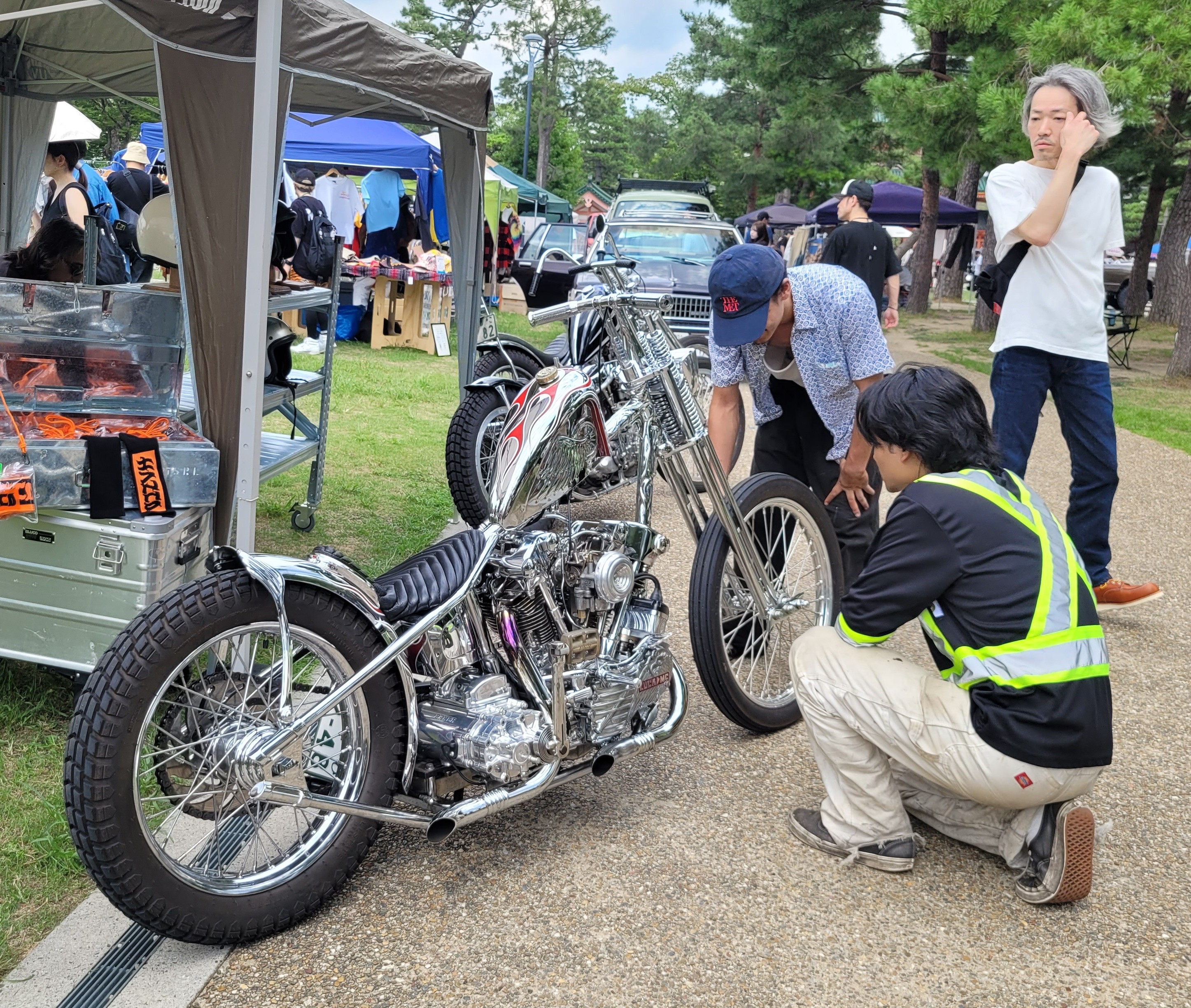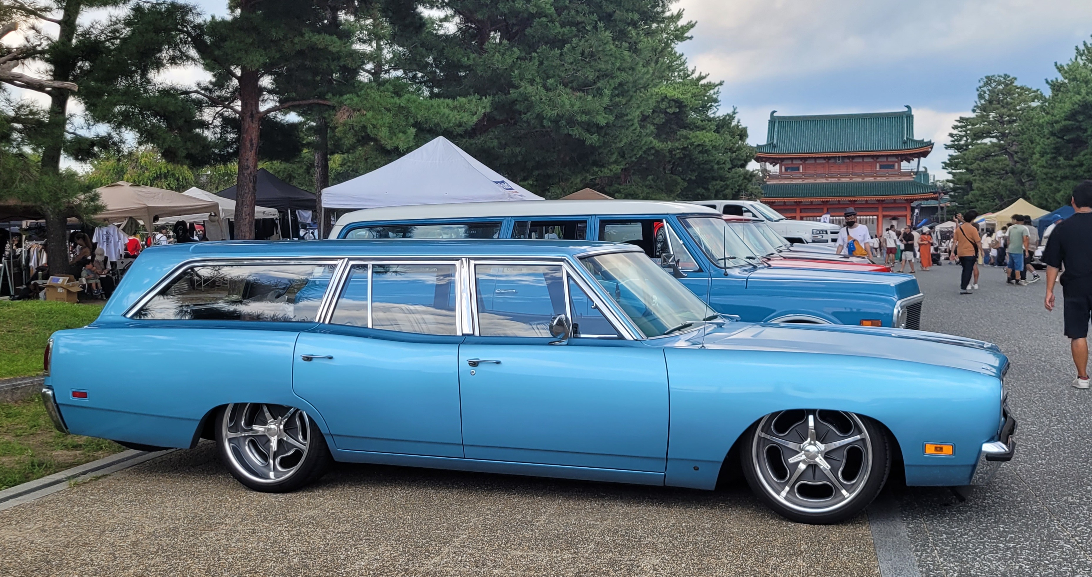 And here was a surprising event: a Sunday vintage car and motorcycle show and swap meet in the park outside the Heian Jingu Shrine.